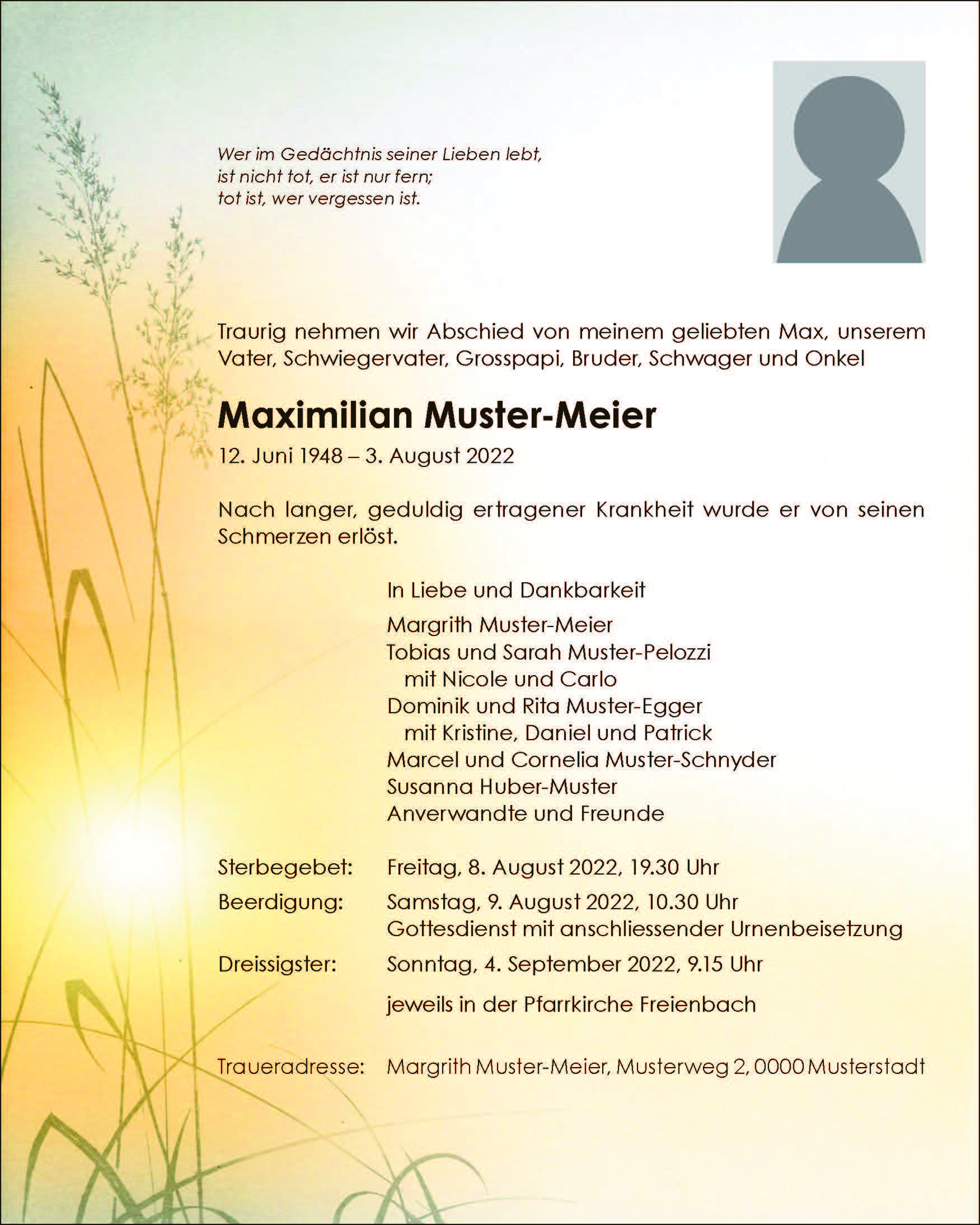 Beispiel einer Todesanzeige
