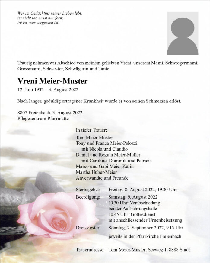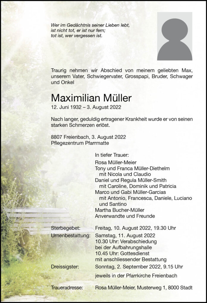 Mit einer Todesanzeige wird in der Zeitung über den Tod eines Mitmenschen informiert, um auch jene Menschen zu erreichen, welche man allenfalls beim Versand der Trauerzirkulare vergessen hat bzw. nicht berücksichtigen konnte.